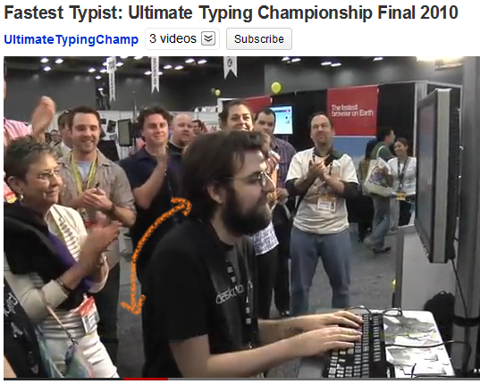 There’s nothing like a professional typing contest to make me feel simultaneously physically superior and intellectually inferior. I’d rather maintain my currently level of mate-ability at 77wpm than achieve a whopping 163wpm at the cost of looking like this guy: