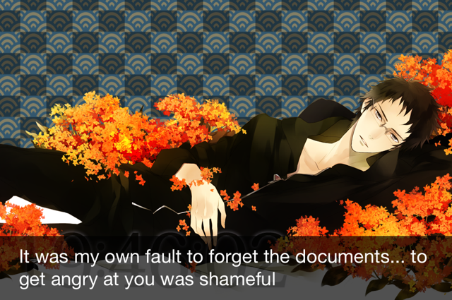 I found an app a while back called Sleepy-time Boyfriend, and yes, it’s just as amazing as it sounds.  It consists of about a dozen anime-ish drawings of Japanese men in various states of recline, each of which have a series of phrases that match their persona.  One is a flirty girl-boy named Sosuke (“Just being with you makes me very happy” and “I guess I should get into bed so you don’t feel lonely”).  Another (and my personal favorite) is Sei (voiced by Takaya Kuroda), a kimono-wearing DREAMBOAT with a voice like butter (“Come closer.” YESSIR).