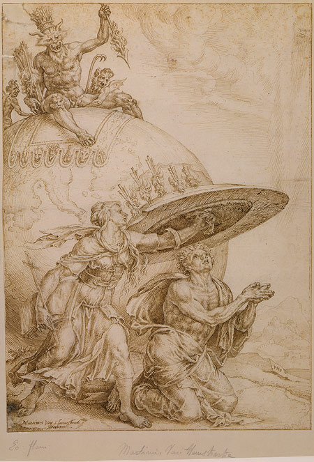 Leave it to the Flemish painters of the 16th century to illustrate this idea perfectly. Check out this drawing by Maarten van Heemskerck, entitled “Man Protected By the Shield of Faith.”
