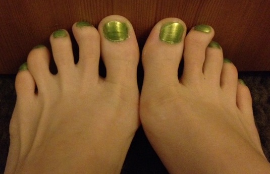 I found some cheap metallic green polish at Target. I plan on putting it on Thursday night so I can put off making my toes look like they’re rotting away due to radioactive exposure for as long as possible. Who knows, I might love it. I’ll upload a photo of the damage when it’s done.