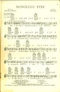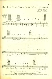 I teach a brother and sister at Karate Job; the older brother is one of my special needs students, and his younger sister is quiet and fierce. Their grandparents moved to Southern California to be close to their grand-kids. We got to talking one day, and it came out that they are from a neighborhood close-by to where my dad grew up in Hawai’i. We chat every time they come in. Once I brought my ukulele in to practice before class, and the grandfather mentioned that he teaches Hawai’ian guitar, and is looking for students. Then he took my ukulele and played a little tune. He said he’d bring me a songbook, and he did.