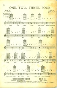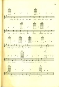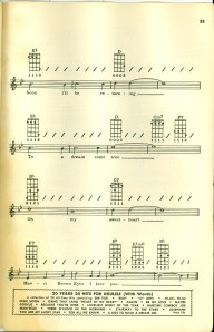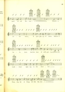 It’s from the 1950’s, so it’s pretty beat-up and racist in some places, but the songs look simple so I thought I’d share.
